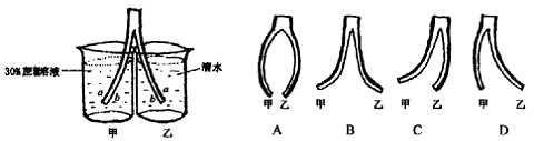 3.植物细胞可以通过渗透作用吸水或失水,将带“皮”的幼嫩的茎纵切后插入两烧杯中,如左图所示。已知b侧的细胞壁比a侧的细胞壁薄,易伸展。判断30分钟后可能出现的形状变化是( )
