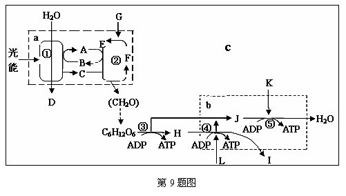 (2)结构a中发生的能量转换过程是 。在其他环境条件适宜而光照强度恰为光补偿点时,单位时间内A-L各物质中产生量与消耗量相等的有 。