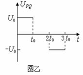 25.(18分)如图甲所示,建立Oxy坐标系,两平行极板P、Q垂直于y轴且关于x轴对称,极板长度和板间距均为l,第一四象限有磁场,方向垂直于Oxy平面向里。位于极板左侧的粒子源沿x轴向右连续发射质量为m、电量为+q、速度相同、重力不计的带电粒子,在0~3t0时间内两板间加上如图乙所示的电压(不考虑极边缘的影响)。已知t=0时刻进入两板间的带电粒子恰好在t0时刻经极板边缘射入磁场。上述m、q、l、t0、B为已知量。(不考虑粒子间相互影响及返回板间的情况)