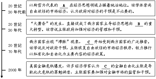 材料二:凯恩斯在《就业、利息和货币通论》中指出,在有效需求不足时,单纯的价格机制无法解决经济的萧条与失业问题,对此,政府应积极加强调控。他认为没有国家的积极干预,资本主义就会灭亡。