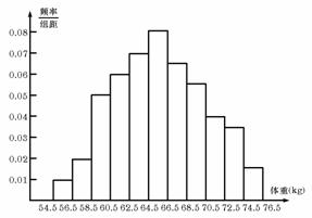 (3)为了了解该校初三学生的身体发育情况,抽查了该校100名初三男生的体重情况,根据所得数据画出样本的频率分布直方图如右图所示,根据此图,估计该校初三男生平均体重. (广东2008年文科改编)