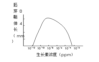 4.下图是IAA浓度对玉米胚芽鞘的生长的影响,下列处理中,何者会明显向左弯曲?