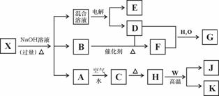 27.(16分)化合物X的水溶液为浅绿色,可发生如下转化关系(部分反应物、生成物略),其中B、D、E、F均为无色气体,W、K为常见金属单质,C为难溶于水的红褐固体。在混合液中加入BaCl2溶液可生成不溶于稀盐酸的白色沉淀,H和W反应放出大量的热。