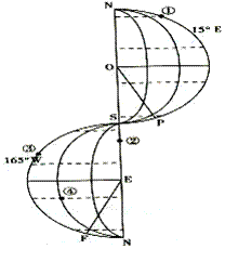 C.昼弧上各地日期相同 D.P点的地方时为7时
