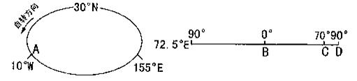 31.下图为“30°N纬线圈和72.5°E经线”,其中30°N纬线上由10°W向西到155°E为夜半球,同时72.5°E经线上只有CD段处于夜半球。读图回答下列问题。(14分)
