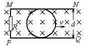 11、如图所示,MN、PQ为两平行金属导轨,M、P间连有一阻值为R的电阻,导轨处于匀强磁场中,磁感应强度为B,磁场方向与导轨所在平面垂直,图中磁场垂直纸面向里.有一金属圆环沿两导轨滑动,速度为v,与导轨接触良好,圆环的直径d与两导轨间的距离相等.设金属环与导轨的电阻均可忽略,当金属环向右做匀速运动时( )
