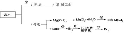 B.过程②中结晶出的MgCl2·6H2O要在HCl氛围中加热脱水制得无水MgCl2