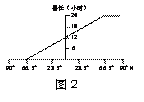 若全球昼长分布如图2所示时,则该日