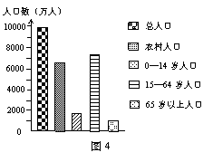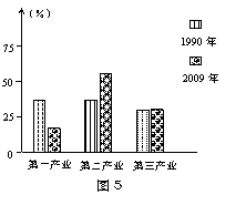 图4表示“我国某省2009年各类人口数量构成图”,图5表示“该省三大产业的比例变化”,据图完成5-6题。