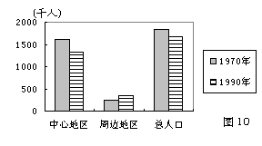 材料二 1970-1990年甲城市圈人口变动情况图(图10)