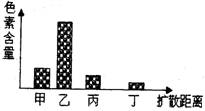 4.右图是用层析法分离、测定新鲜绿叶的四种光合色素的情况。