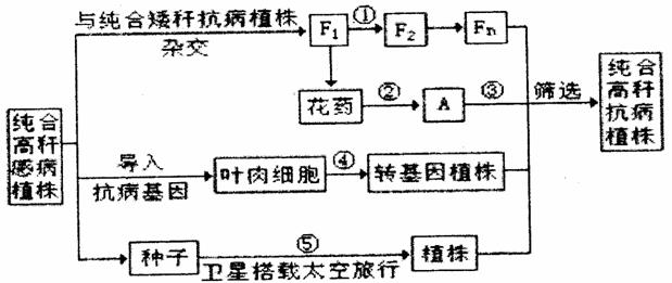 (4)过程⑤作物空间育种所依据的遗传学原理是 。