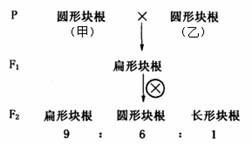 D.F2圆形块根萝卜的基因型有4种,其中杂合体占2/3