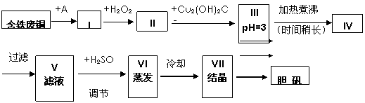 胆矾是一种常见的化合物,工业上它也是一种制取其它含铜化合物的原料。现有废铜(主要杂质为Fe)来制备胆矾。有人设计了如下流程: