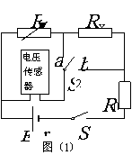 S2切换到a,调节电阻箱,读出其阻值为R1,记录电压传感器测得的数据为Ul,然后保持电阻箱阻值不变,将S2切换到b,记录电压传感器示数为U2.