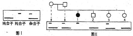 一对等位基因经某种限制性内切酶切割后形成的DNA片段长度存在差异,凝胶电泳分离限制酶切割的DNA片段,与探针杂交后可显示出不同的带谱(如图I所示)。根据该特性,就能将它作为标记定位在基因组的某一位置上。现有一对夫妇生了四个儿女,其中1号性状表现特殊(如图II),由此可推知四个儿女的基因型正确的是(用A、a表示一对等位基因)( )