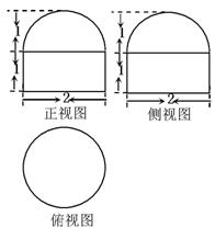视图、侧视图都是由半圆和矩形组成,根据图中