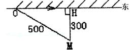 21.如图,一辆汽车从O点出发,沿海岸一条直线公路以100公里/小时的速度向东匀速行驶,汽车开动时,在O点南偏东方向距O点500公里且与海岸距离为300公里的海面上M处有一快艇,与汽车同时出发,要把一件重要物品递送给这辆汽车的司机,问快艇至少必须以多大的速度行驶,才能使物品送到司机手中?并求快艇以最小速度行驶时的行驶方向与OM所成的角.