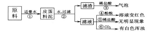 23、(13分)松花皮蛋是我们喜爱的食品。某小组同学查阅资料得知,制皮蛋料泥的原料主要是:生石灰、纯碱、草木灰(含K2CO3)等。同学们对料泥进行了如下探究: