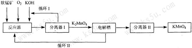27.(12分)KMnO4是一种常用的强氧化剂,工业上可以用软锰矿(主要成分为MnO2)为原料,通过液相法生产,即在碱性条件下用氧气氧化MnO2得到K2MnO4,分离后得到K2MnO4;再用铂板作阳极,铁作阴极电解K2MnO4溶液得到KMnO4。简略生产过程如下图所示: