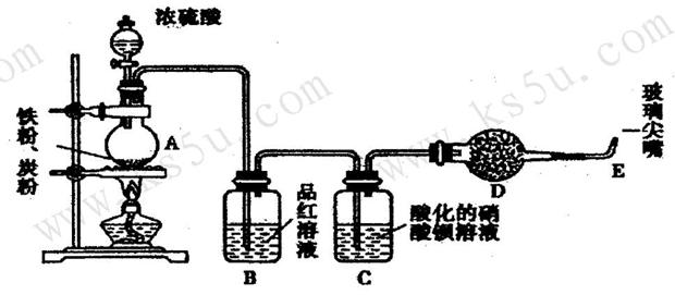 29.(14分)为探究浓硫酸的性质,设计如下图所示装置。检查好装置的气密性后,向烧瓶中加入过量的铁粉、碳粉,再从分液漏斗中滴加浓硫酸。