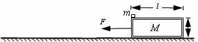 4.(16分)长为 l = 2 m、高为 h = 1.25 m、质量为 M = 2 kg的木箱静止在水平地面上,它与地面间的动摩擦因数为 μ 1 = 0.2,在木箱的左端放一质量为 m = 1 kg的小铁块,铁块与木箱间的动摩擦因数为 μ 2 = 0.1,现以 F = 11N的水平拉力向左拉动木箱,g取10 m/s2,求