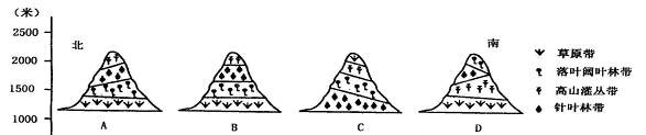 27.能正确表示阴山山地垂直自然带分布规律的是