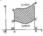 如果图形由曲线y1=f1(x),y2=f2(x)(不妨设f1(x)≥f2(x)≥0),及直线x=a,x=b(a<b)围成,那么所求图形的面积S=S曲边梯形AMNB-S曲边梯形DMNC=