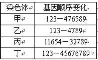 果蝇的一条染色体上,正常基因的排列顺序为123-456789,“-”代表着丝点,表中表示了由该染色体发生变异后基因顺序变化的情况。