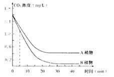 B.B植物在前5 min里光合作用消耗的CO2总量为0.5mg