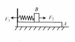 如图所示:一轻弹簧左端固定在足够长的木块A的左端挡板上,右端与小物块B连接,A、B及A与地面间的接触面均光滑。开始时,A和B均静止,现同时对A、B施加大小相等、方向相反的水平恒力F1和F2。则从两物体开始运动到以后的整个运动过程中(弹簧形变始终不超过其弹性限度),对A、B和弹簧组成的系统,正确的说法是
