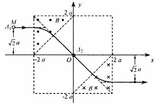 的M处平行于x轴向右运动,通过第II象限的匀强磁场区域后,在坐标原点O处与静止在该点的粒子A2发生了对心正碰,碰后它们结合在一起进人第IV象限,碰撞前后它们的运动轨迹如图所示。若两个粒子的质量相等且均可视为质点、重力不计、碰撞过程中无电荷量损失。