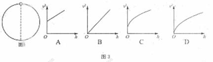 17.如图3所示,一个小球套在竖直放置的光滑圆环上,小球从最高点向下滑动过程中,其线速度大小的平方v2随下落高度h的变化图象可能是图中的 ( )