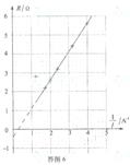 ,根据R-1/I图线可知:电源的电动势等于图线的斜率,内阻为纵轴负方向的截距减去电流表的内阻。