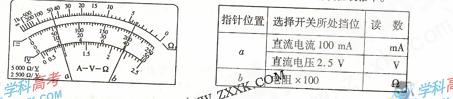 3、用多用电表进行了几次测量,指针分别处于a和b的位置,如图所示。若多用电表的选择开关处于下面表格中所指的档位,a和b的相应读数是多少?请填在表格中。
