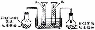 (10分)某校科技活动小组用镁粉、盐酸、醋酸设计以下实验,对两种酸分别与镁反应的速率和电离平衡理论进行研究,设计的实验装置如图所示(夹持固定装置已略去)。正确操作,记录得到下表中部分实验数据。