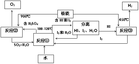 ⑵利用核能把水分解制氢气,是目前正在研究的课题。下图是其中的一种流程,其中用了过量的碘。(提示:反应②的产物是O2、SO2和H2O)