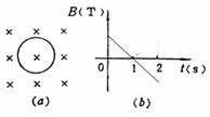 3.如图所示,一个环形线圈放在均匀磁场中,设在第一秒内磁感线垂直于线圈平面向里,如图(a),磁感应强度B随时间t而变化的关系如图(b),那么在这二秒内线圈中感应电流的大小和方向是( )