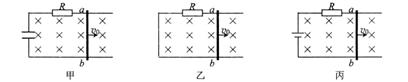 11.如图甲、乙、丙中,除导体棒ab可沿导轨运动外,其余部分固定不动,除电阻R外,其他各部分均不计电阻,金属导轨光滑且足够长。今给导体棒ab一个向右的初速度v0,在甲、乙、丙三种情况下关于导体棒的最终运动状态的说法,正确的是( )