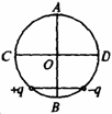 3、AB、CD为圆的两条相互垂直的直径,圆心为O.将电荷量为q的正、负点电荷放在圆周上关于AB对称且相距等于圆的半径的位置,如图所示,要使圆心处的电场强度为零,可在圆周上再放一个适当电荷量的电荷Q,则该点电荷Q