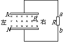 6、右图是磁流体发电机的原理示意图,金属板M、N正对着平行放置,且板面垂直于纸面,在两板之间接有电阻R。在极板间有垂直于纸面向里的匀强磁场。当等离子束(分别带有等量正、负电荷的离子束)从左向右进入极板时,下列说法中正确的是: