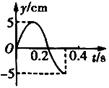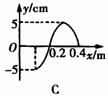 一质点以坐标系原点O为平衡位置沿y轴方向做简谐振动,其振动图像如右图所示,振动形成的简谐横波在介质中沿x轴正向传播,波速为1.0m/s,若质点振动四分之三周期后立即停止,则再经过0.1s后的波形图是: