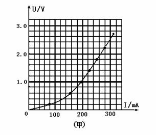 (Ⅱ)某实验员通过实验已得出了图甲所示的U-I特性曲线图。接着,他又用该二极管、电源E和另一只固定电阻R等组成图乙所示的电路,当闭合开关S时,发现二极管发出微弱白光,立即用万用表的电压挡测得电阻R两端的电压为1.0V,由此可以判定电阻R的阻值大约为 Ω。