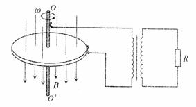24. (北京市崇文区2009-2010学年度第二学期统一练习(二)) 如图所示,水平金属圆盘置于磁感应强度为B、方向竖直向下的匀强磁场中,随盘绕金属转轴