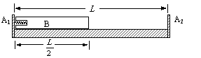 ,其左端有一光滑小槽,槽内装有轻质弹簧。开始时,使B紧贴A1壁,弹簧处于压缩状态,其弹性势能为Ep。现突然释放弹簧,滑块B被弹开。假设弹簧的压缩量较小,恢复形变所用的时间可以忽略。求滑块B到达A2壁所用的时间。