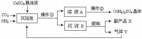 (2)操作①的名称是 ,实验室中进行此操作时,用到的玻璃仪器除玻璃棒、烧杯外,还需 。操作②的过程是加热浓缩、冷却、结晶,获得(NH4)2 SO4晶体属于