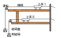 (2010年上海市徐汇区高三下学期学习能力诊断)在“探究加速度与物体质量、物体受力的关系”活动中,某小组设计了如图所示的实验装置。图中上下两层水平轨道表面光滑,两小车前端系上细线,细线跨过滑轮并挂上砝码盘,将砝码和砝码盘的总重作为小车所受合外力,两小车尾部细线连到控制装置上,实验时通过控制装置使两小车同时开始运动,并同时停止。