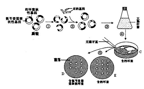 (2)经过①和②步骤后,有些质粒上的 基因内插入了外源目的基因,形成重组质粒。