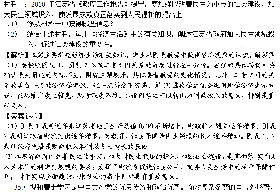 [解析]此题考试综合学科知识。背景材料主要阐述党的问题。学生对于材料的主体认识很明确。设问中分别从哲学与政治生活两大角度进行,考查学生的综合知识能力。解答第(1)学生一定要牢牢锁定“唯物论”答案组织难度不大,属于中档偏下题。解答第(2)要全面具备党执政方式的知识,特别是完善党的执政方式的意义。在复习中若考生能有效复习此内容,则比较简单,反之得分不会多高。