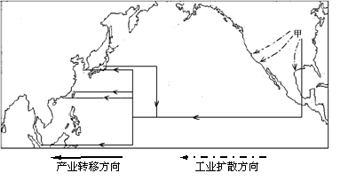 读世界20世纪60年代部分地区产业转移示意图(下图),回答10-11题。